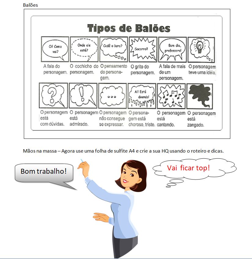 PARA SE CRIAR UMA HISTÓRIA EM QUADRINHOS PRECISAMOS DE UM ROTEIRO. ASSIM, PARA AJUDAR NESSA CRIAÇÃO, ESCREVA O QUE ESTÁ PENSANDO SOBRE: